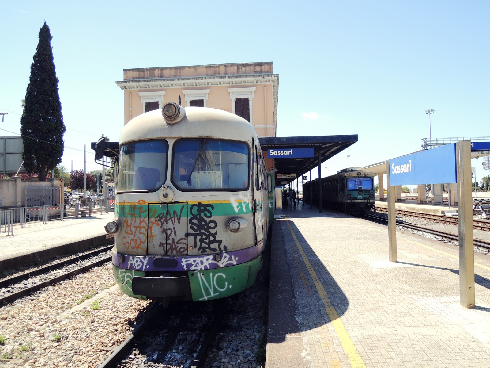Skończyliśmy pobyt w Cagliari i ruszyliśmy na północ. Koleją! Kolej to najlepszy środek transportu publicznego na Sardynii, jako jedyny jest w miarę pewny. Kierowcy autobusów nie zawsze czują się w obowiązku zatrzymać na przystanku. To takie dziwactwo, bo jednak pasażer to klient. Jedziemy więc z przesiadką sześciominutową w Oristano do Sassari, w którym zatrzymujemy się tylko na nocleg. Airbnb zarezerwowaliśmy parę dni przed wyjazdem. Nie ma tutaj dostępu do morza, a miasto nawet przez samych mieszkańców nie jest chyba polecane, bo dwie osoby powiedziały nam, że tutaj nic nie ma i trzeba jechać na wybrzeże. Ale jednak mają trochę zabytków. Jest w końcu z X w. Katedra, trochę wąskich uliczek. Jest jeszcze współczesna hala targowa, w której dominują ryby. Siedliśmy w pierwszej lepszej i pizzerii i nie było wcale taniej niż nad  morzem. w dodatku coperto to aż 2 € (tyle sobie doliczają za obsługę). o samym noclegu słów kilka: nie był najlepszy, był najgorszy z całej wycieczki. Tyle się mówi, że Airbnb jest takie świetne, ale jednak nie zawsze.